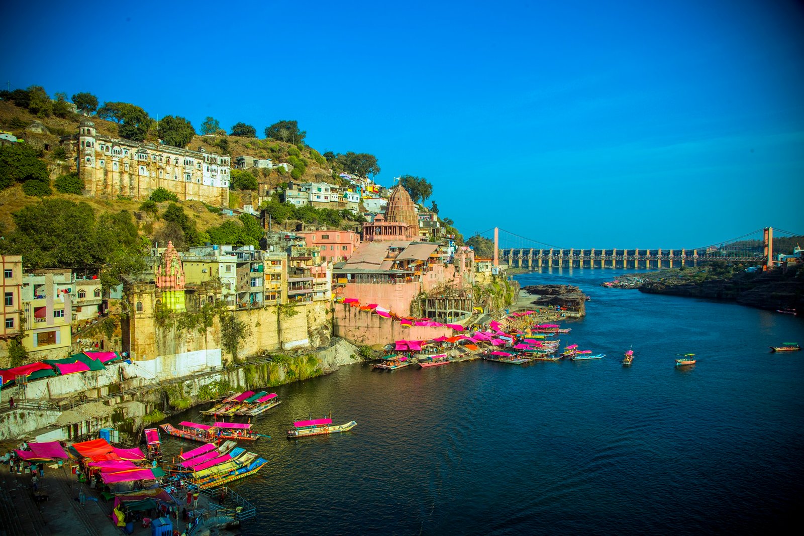 Omkareshwar is formed by the sacred river Narmada. This is one of the most sacred rivers in India and is now home to one of the world's largest solar power plant. The temple is situated on Mandhata or Shivpuri island on the banks of Narmada and Kaveri river (a tributary of Narmada).